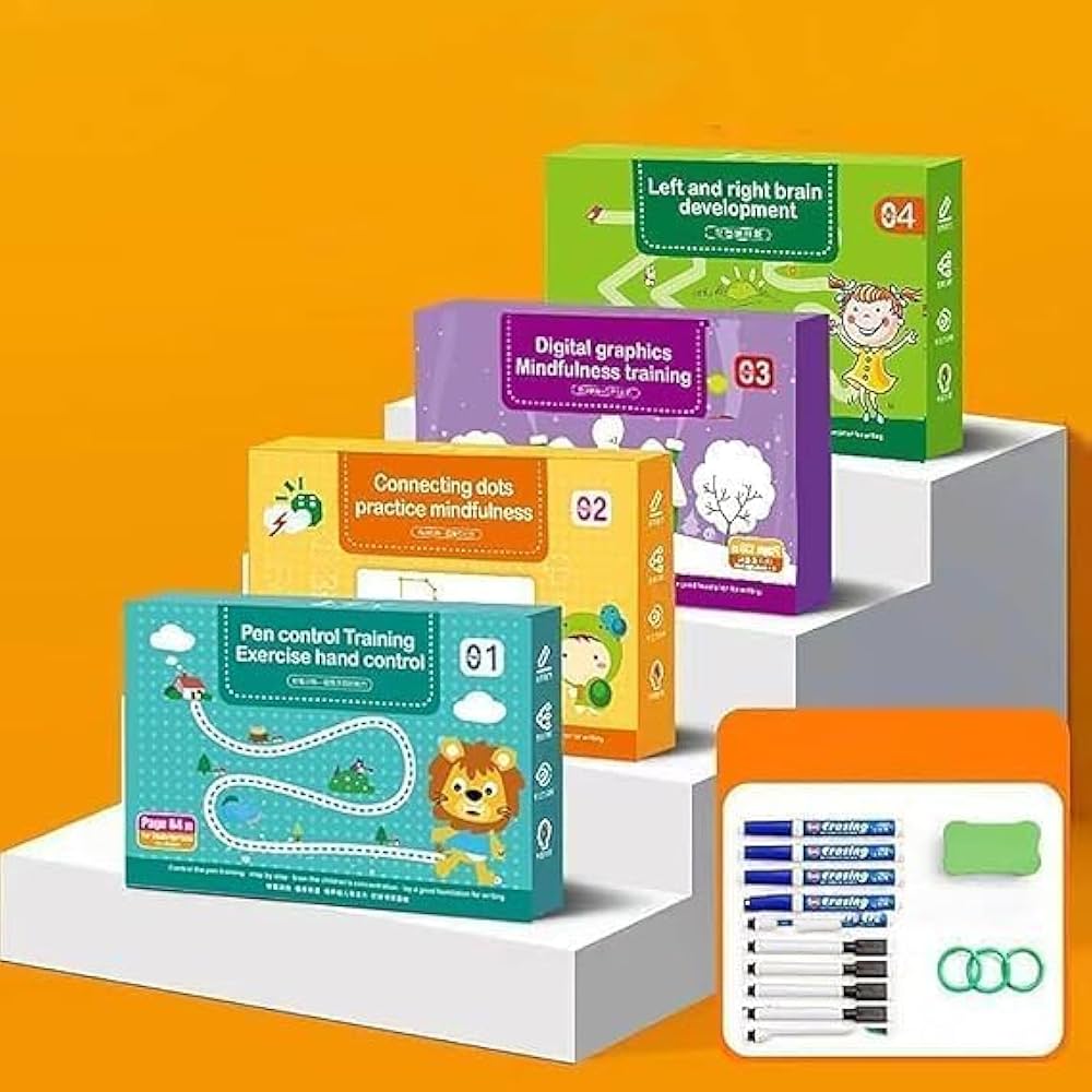 - 【Magical Tracing Workbook】 This preschool magic tracing practice book for kids includes colouring pictures and cognitive games that provide a variety of exercises to improve fine motor skills, attention, and hand-eye coordination.