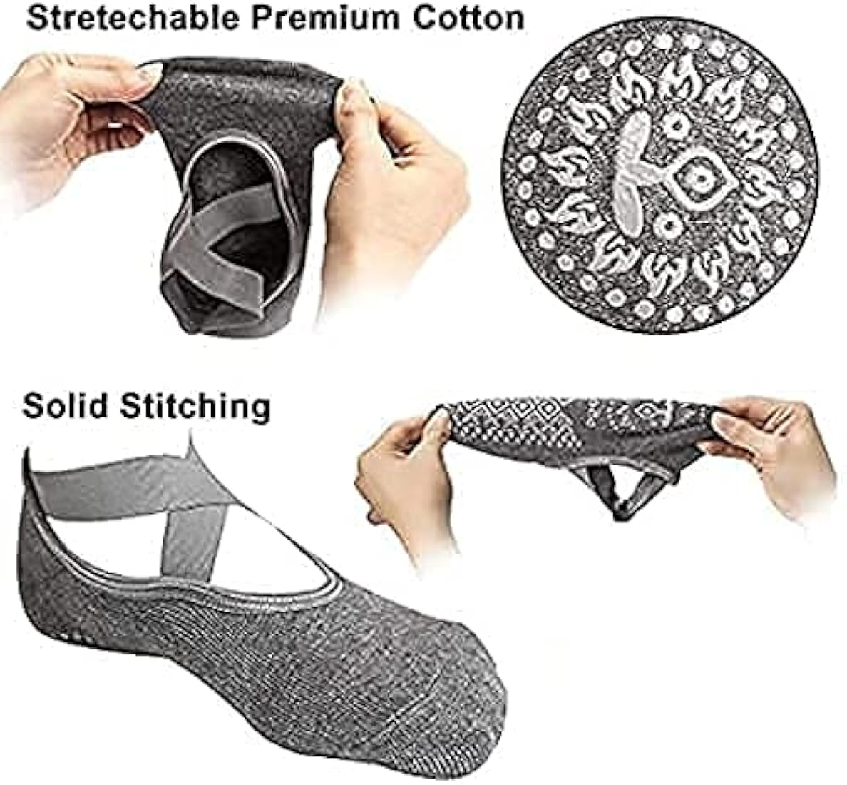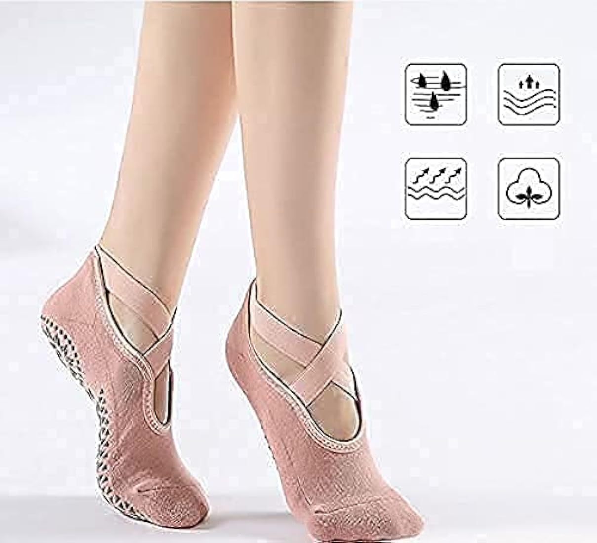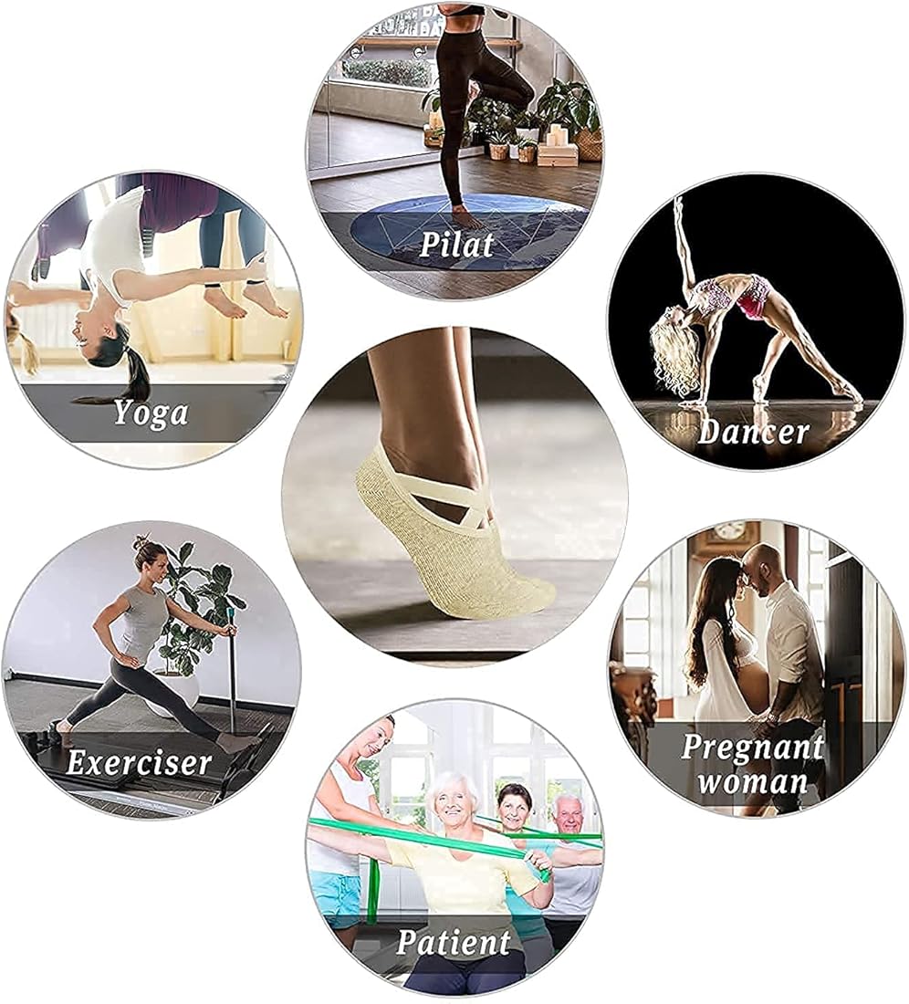 Yoga Socks for Women, girls Anti-Skid, Bacterial Pilates Dance Ballet Cotton Walking & Ankle Grips & Straps, Multicolor